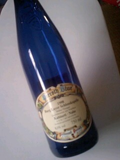 甘口のドイツワインとゆうワタクシの好みがリサーチ済みであることに加えて、いかにも女の子ウケしそうなブルーボトル。
