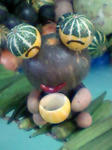 トウガラシの傘、オクラの橋やカボチャの飛び石…